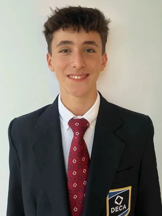 Kate Hampton is a junior at Dulles High School and a third year DECA member. She is a three time state qualifier and represented her chapter at ICDC as a freshman. Kate’s leadership experience ranges from the chapter to district level. Her freshman year, she helped establish her chapter’s SBE program and currently aids with internal operations. Serving as the Vice President of Prepared Events during her sophomore year, she supported over 50 members by proofreading papers, providing detailed feedback, and hosting over ten instructional workshops to guide competitors. She recently completed her term as Vice President of District 3, where she took part in strengthening emerging chapters through virtual chapter check ins, offering one on one guidance. Additionally, she helped lead a district wide hygiene donation drive that collected over 1000 items. Beyond the blazer, Kate enjoys playing pickle ball and making baked goods for her family!