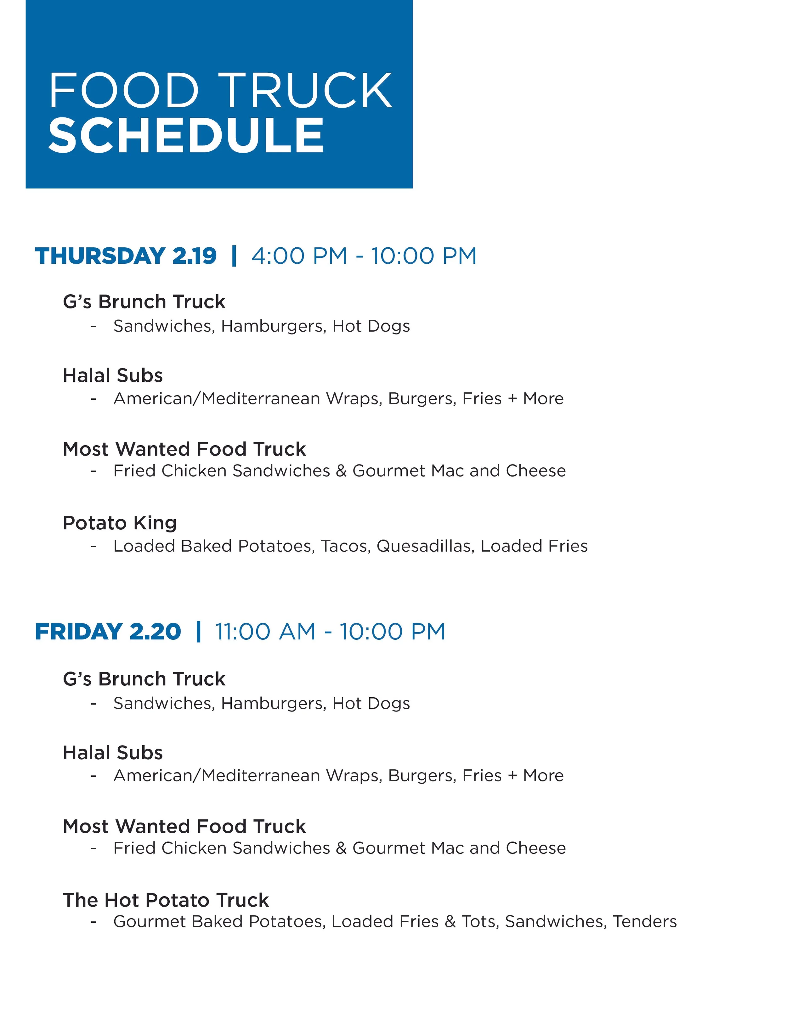 COMPETITION + EXAM SCHEDULE | FOOD TRUCK INFORMATION
