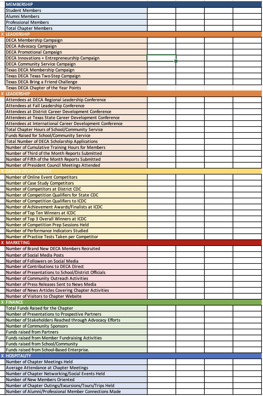 Setting Chapter Goals Chapter Mngmt ResourcesNew Chapter ResourcesBack to SchoolChapter BuildingEnd of the Year May 27 Written By Nicole Willis Download Goals Worksheet Template PREVIEWWhat does the chapter goals worksheet look like? Related Resources: Featured Chapter Calendar Template DECA Elevate Conflict Resolution Strategies Communicating With Your Chapter Officer Team Running Your Chapter Officer Team Building Your Chapter Officer Team The Responsibilities of Being and Officer Glass Class - Chapter Management Community Service Ideas for Your Chapter Setting Chapter Goals 5 Key Skills to Being a Leader Chapter ManagementChapter GoalsChapter LeadersChapter LeadershipChapter OfficersGoalsSetting GoalstxdecaresourceTools/Templates Nicole Willis